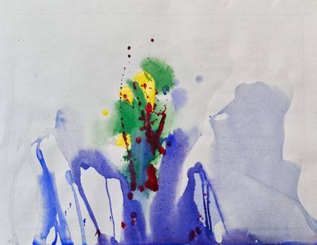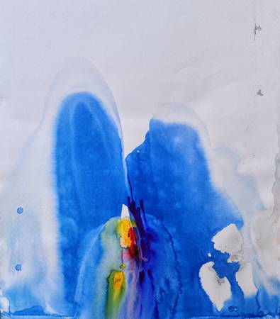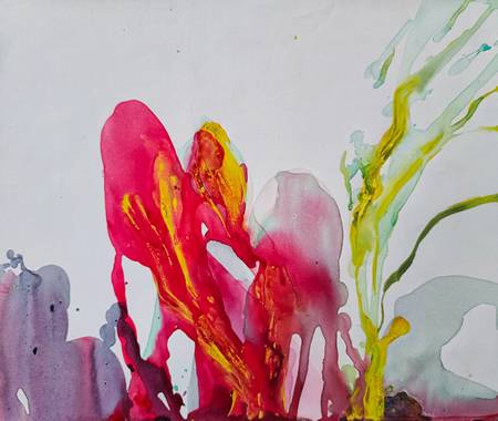 Yadav’s mature confidence is evident in his handling of fluid media: bleeding edges that resist containment, fields of pigment that collide yet hold their ground. His gestures feel both spontaneous and inevitable, as if the work knows how to form itself. The paintings echo the lineage of abstract expressionism yet remain unmistakably rooted in his own sensibility, devotional to nature but no longer beholden to its forms.