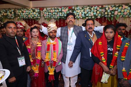 The program, held at Agrawal Farm House, featured Nikah ceremonies for Muslim couples while Hindu couples took part in the Varmala rituals. Distinguished guests blessed the newlyweds and extended heartfelt wishes for their future.