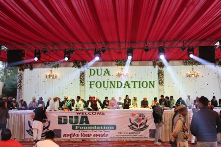 Najibabad, Bijnor (Uttar Pradesh): Celebrating its first anniversary, Dua Foundation organized a grand mass wedding ceremony in Najibabad, Bijnor, where hundreds of couples were married in a harmonious and inclusive event. The ceremony showcased an extraordinary example of Hindu–Muslim unity, with prominent dignitaries gracing the occasion.