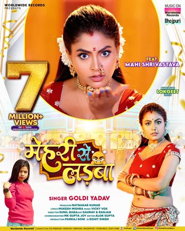 रत्नाकर कुमार, माही श्रीवास्तव और गोल्डी यादव का भोजपुरी गाना ‘मेहरी से लड़बा’ ने पार किया सात मिलियन व्यूज वर्ल्डवाइड रिकॉर्ड्स भोजपुरी पर